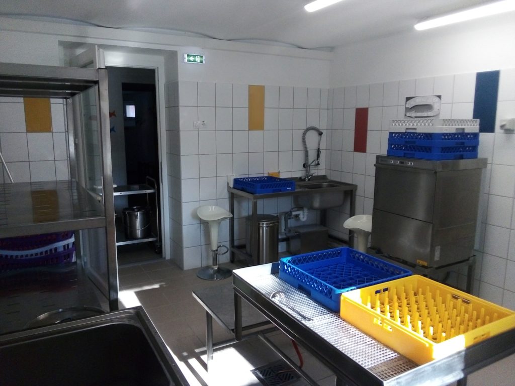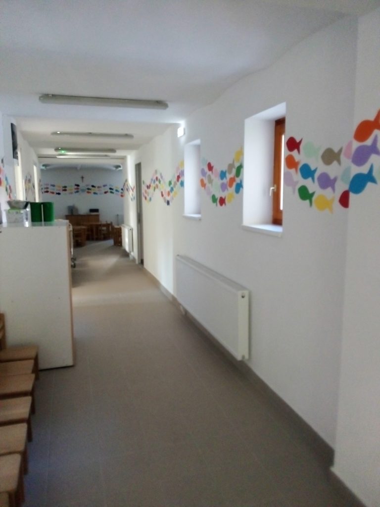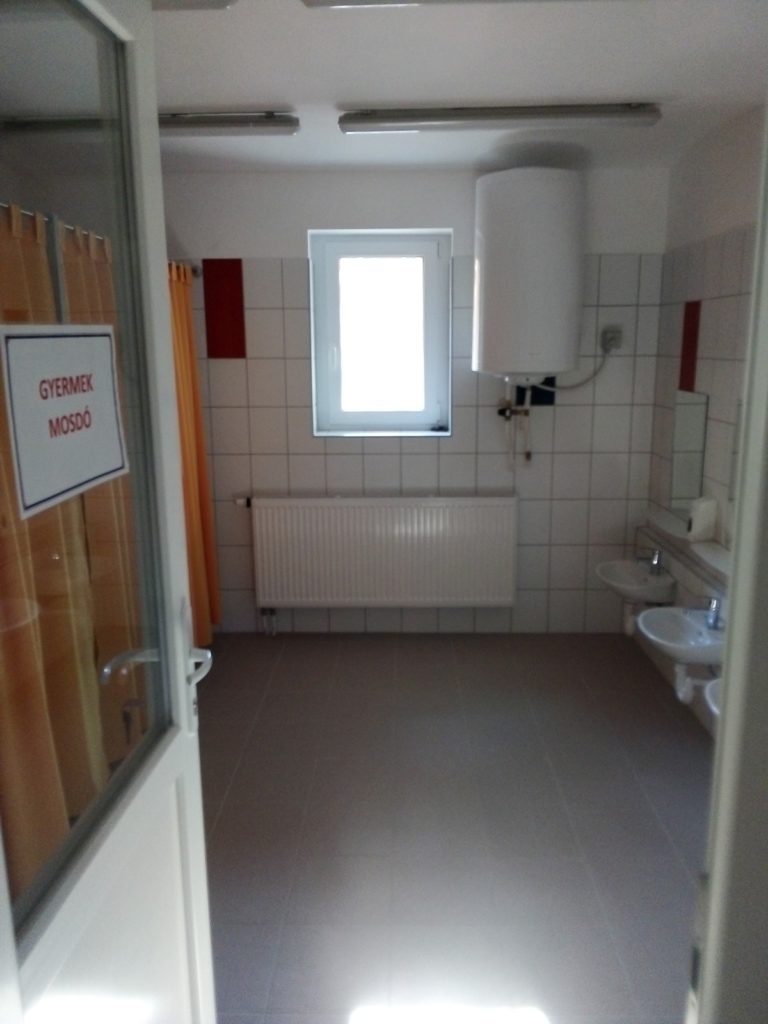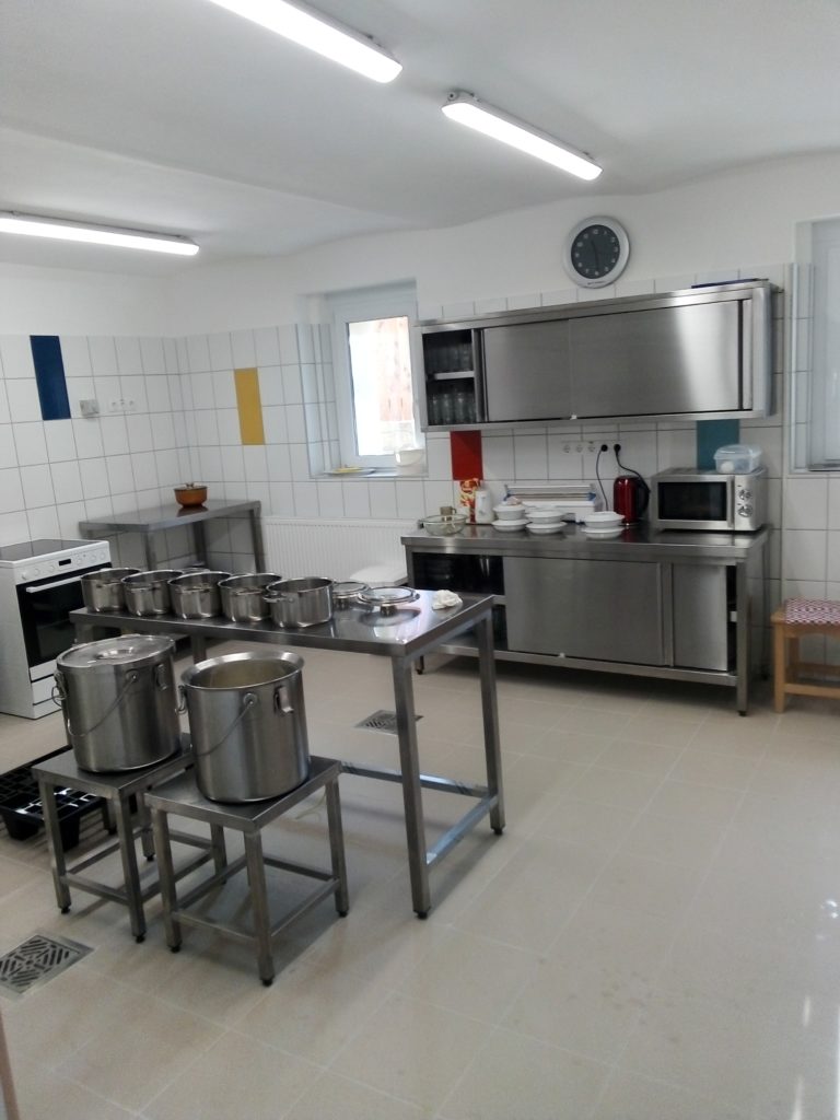 Felújított konyhánk és étkezőnk alagsori folyosó gyermek mosdó étkező 1 étkező 2 tálaló konyha mosogató konyha